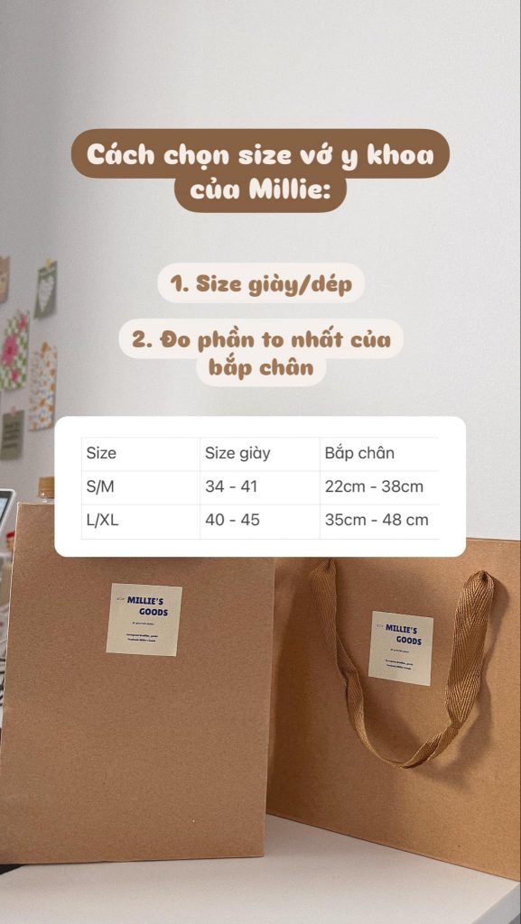 Hãy đo chu vi phần dày nhất của bắp chân để đảm bảo bạn đang mua đúng kích cỡ. Tất cả vớ y khoa của chúng tôi đều được thiết kế để tạo ra mức nén nhẹ đến trung bình (15-25 mmHg). Nếu bạn cần thêm trợ giúp về kích thước, vui lòng liên hệ với chúng tôi qua email milliesgoods8@gmail.com
